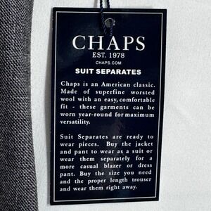 Chaps Wool Dress Pants NWT Men's 36x34 Sut Separates Flat Front Grey Trousers