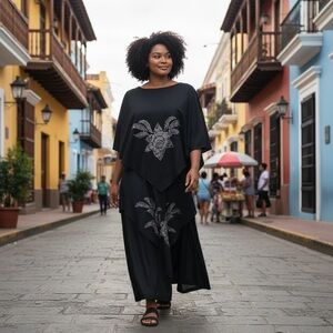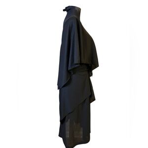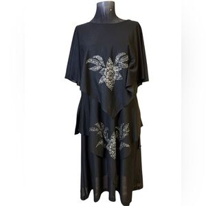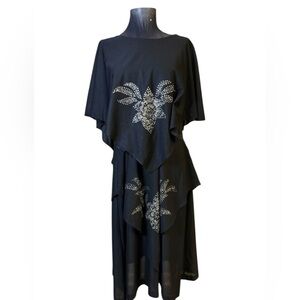 Vintage Gilberti Black Asymmetrical Dress with Silver Accents