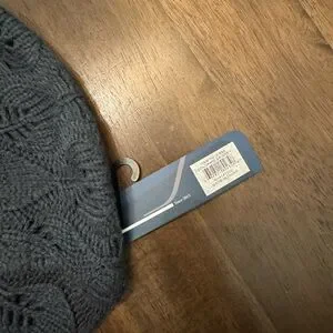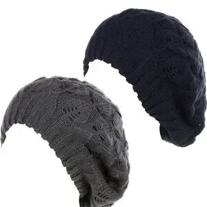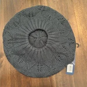 Stylish gray knit beret with intricate patterns. Perfect for any season.