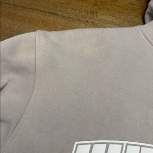 Soft tan colored White Fox hoodie with white letters. There is slight discoloration on left shoulder as noted in picture. No fabric softener or heavy scented detergent used. Smoke free home.
