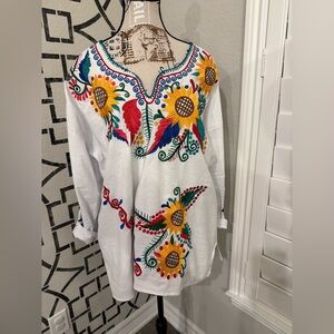 Embroidered Vibrant Floral Fiesta Top XL