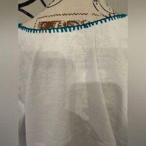 Vibrant embroidered floral top in white, perfect for adding a pop of color to your wardrobe. Features intricate designs in red, yellow, green, and blue.