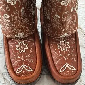 Embrace the cold with these elegant embroidered brown winter boots. Perfect for adding warmth and style to your winter wardrobe.