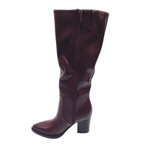 Womens Burgundy Knee-High Heeled Boots 6.5 Faux Leather Side Zipper Block Heel
