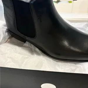 Elegant black leather boots with a sleek design. Ideal for versatile styling.