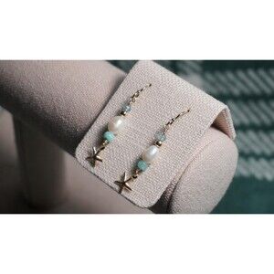 These Boho Starfish Drop Earrings feature a whimsical gold charm and blue bead accents stacked with lustrous pearls. Suspended from 14k gold fill hooks, they offer a playful tropical vibe that makes a perfect vacation gift or summer staple for anyone who loves the coast.