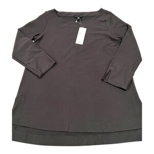 NWT Eileen Fisher Ballet Neck Box Top XS Charcoal Gray Long Sleeve MSRP $188