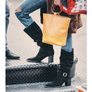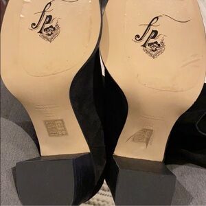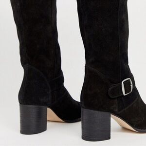 FREE PEOPLE BLACK SUEDE DAHLIASLOUCHY HIGH BOOTS W BUCKLE SIZE 6