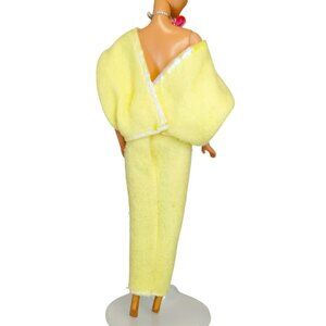 Vintage Barbie 1986 Pet Show Yellow & Gold Outfit With Skirt & Top 3658. Condition is preowned. This iconic Barbie outfit features a stylish yellow and gold design, showcasing a soft fabric skirt and a matching top with metallic accents. Minor fabric wear visible, particularly at seams, consistent with age. (FC03)