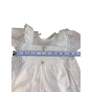 The Evy Of California Vintage Girls USA Made Lace Dress is a charming T-2 size dress from the 1980s, perfect for little girls or big doll clothes. Made in the USA with original lace material, this sleeveless dress features a pink floral design that adds a touch of whimsy to any outfit. This vintage piece is a must-have for collectors of children's vintage clothing, offering a piece of nostalgia from a bygone era.