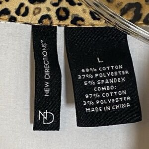 New Direction Top Womens Large White Leopard Trim Button Down Cuff Shirt Classic