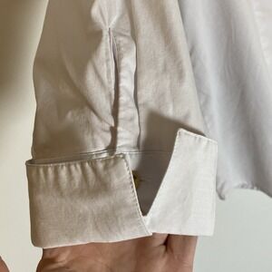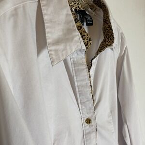 Up for sale is a - New Direction Top Womens Large White Leopard Trim Button Down Cuff Shirt Classic