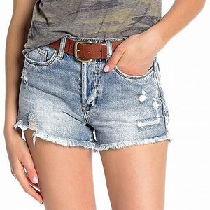 BLANKNYC Distressed High Rise Cutoff Shorts Denim Button Fly Light Wash Sz 30