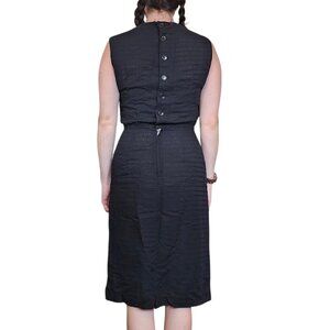 1950s Jerry Gilden Wiggle Dress Black Pleated Sleeveless Sz 4 Thin Linen Cotton?
