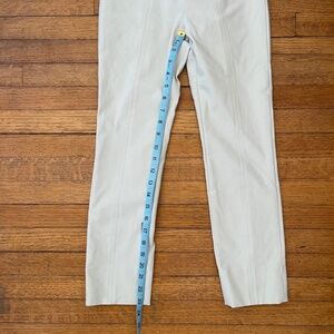 Excellent Used Condition - Vince Stitch Italian Ponte Seam Legging - Size XS - Gesso Bone Ivory White - Precisely paneled - Elasticated waistband - Slit back hems - Zip fastening along side.