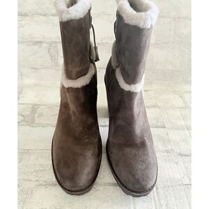 NWOB Frye Womens Jen Shearling Boots Gray Suede Short Ankle Zip Winter Style 7