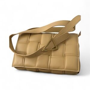 Designer Inspired Padded vegan leather woven crossbody bag with adjustable shoulder strap.