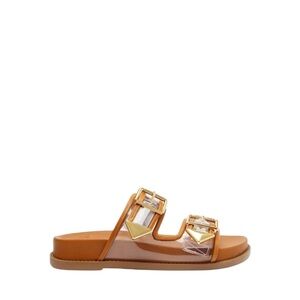 Experience the perfect blend of style and comfort with SCHUTZ's tan sandals, featuring sleek gold adjustable buckle accents. These sandals boast a smooth leather finish and adjustable straps for a personalized fit, making them ideal for any casual occasion.