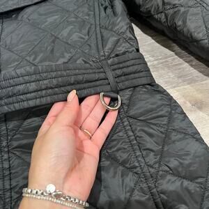 Burberry London Baughton Black Quilted Belted Removable Hood Jacket Size Small