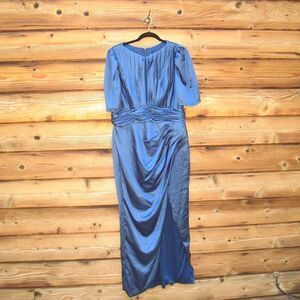 Mac Duggal 27014 Womens Blue PUFF SLEEVE PLEATED BODICE DRAPED GOWN