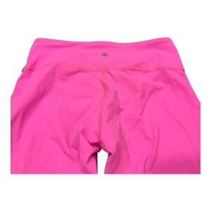 Vibrant pink tie-dye cropped leggings from Lululemon Athletica capture your active spirit and add a pop of energetic color to your workout wardrobe. The comfortable waistband ensures a secure fit as you move, while the cropped length offers freedom and airflow. Perfect for yoga sessions, gym workouts, or casual errands.