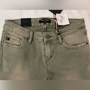 Dear John Stretch skinny mid-rise jeans, raw edge, size 25, NWT color is Mortar, really unique neutral color more like any army green, with a little fade on thighs. Classic Dear John stretch and love the raw edge, really cute with tennis shoes.