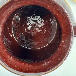 Keywords: stoneware, bean pot, crock pot, vintage, two tone, brown, beige, kitchen decor, country style, farmhouse, rustic, soup bowl, serving dish, kitchenware, pottery