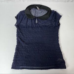 Free People Sheer Sleeveless Navy Blue Collard Top. Size M