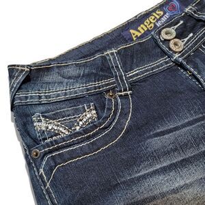 Angels Jeans Low-Rise Y2K Blue Denim White Stitching Shorts