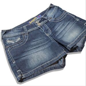Angels Jeans Low-Rise Blue Denim White Stitching Shorts