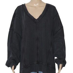 Free People Flow And Groove Pullover Black Oversized Pullover Top S