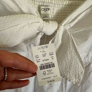 J. Crew Factory Women’s White Seersucker Tie Front Midi Dress
