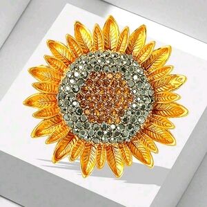 A nice ~1.5 x 1.5 size of just the sunflower head that showcases different sparkly, bronze toned rhinestones in the middle, too! Very realistic looking. ✨ So eye-catching and unique! Sunflowers symbolize positivity, optimism, strength, + courage, making this an excellent choice as a gift for others or to yourself! 🌻
