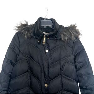 Kenneth Cole New York Black Down Insulated Full Zip Hooded Fur Puffer Coat Large