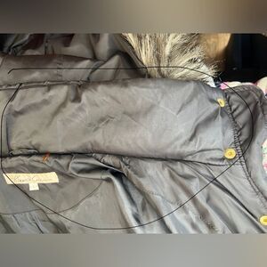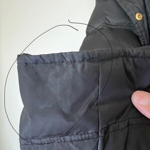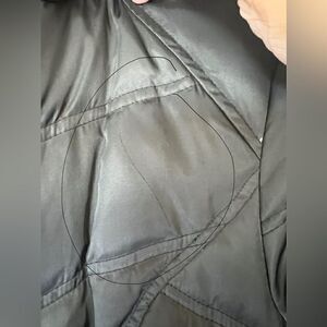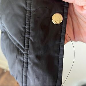 **this coat has wear throughout including: a pine hole on one of the sleeves, marks/stains, and snags on the fabric. It is being sold as is. I’ve included photos to show**