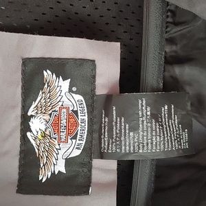 Harley Davidson Motorcycle Windbreaker Riding Jacket has reflective stripes and details. XS on tag but fits like M. Has drawcord at waist, storm flap closure and velcro adjustment at sleeves. See pictures for measurements before buying. No hood attached. New to poshmark? Sign up with my code Jstewart261 to receive $15 off your first purchase.