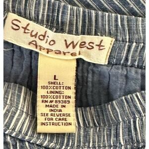 Studio West Apparel Cotton Midi Pull On Skirt Large Blue White Striped Cowgirl