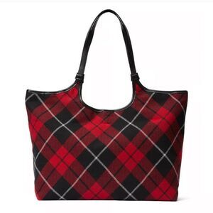 Elevate your style with this chic red plaid tote bag. Perfect for any occasion, this bag combines fashion and functionality.