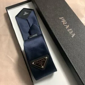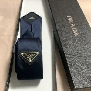 Elevate your style with this elegant navy blue tie from Prada. Perfect for any formal occasion.
