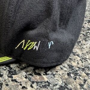 Black cap featuring a striking neon green peacock pattern. COOGI branding on the front. Excellent condition used for display/ decor