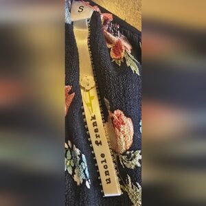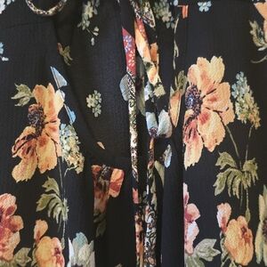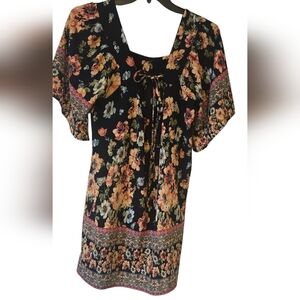Uncke Frank Mini Dress with an all over floral print on a black background. Flowy Short sleeves and tie closure in the back.