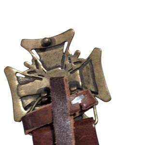 Olga Santini women's brown Italian leather belt with a turquoise cross buckle