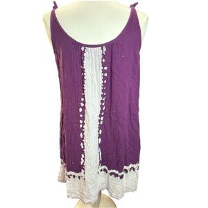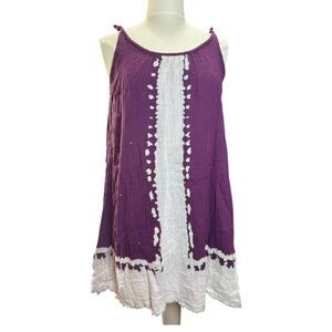 Stylish sleeveless dress in purple and white. Perfect for casual outings. The Coco Cotton Gauze Cover-Up Dress in vibrant purple tie-dye is a perfect blend of comfort and style. Crafted from super soft cotton gauze, this dress offers a lightweight, breathable feel ideal for sunny days. Its relaxed silhouette and playful design make it a versatile choice for beach outings or casual gatherings. Embrace the laid-back vibe with this eye-catching piece that effortlessly enhances any summer wardrobe.