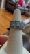 Sterling silver ring featuring baguette-cut blue topaz and round-cut amethyst gemstones in a brick-like arrangement. Very unique piece by the designer Michael Valitutti. Size 6 in good condition