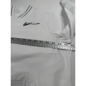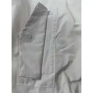 The NIKE ON-FIELD x LSU TIGERS Sz L Sideline Players Jacket Snap Front in white is a versatile and stylish jacket for men. Made of polyester with a solid pattern, this long sleeve parka features a snap closure and a band collar. Perfect for casual occasions, this jacket is machine washable and designed for all seasons with features such as moisture-wicking, breathable, water resistant, and wind resistant materials. The design includes magnetic pocket flaps, making it both functional and fashionable for fans of American football and outdoor activities.