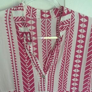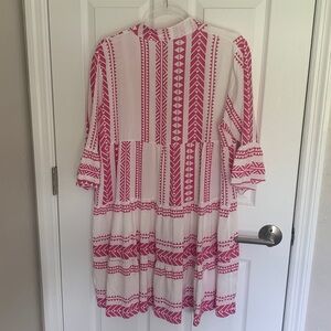 Pink and white boho dress with flared 3/4 sleeves size medium/large