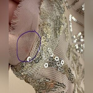 Great condition but has a very light red mark on the back of one armpit that’s looks like it might wash out if treated.
