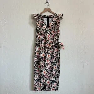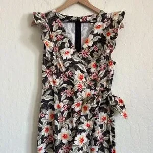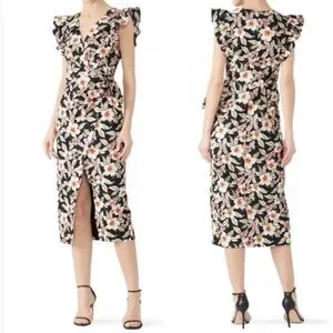Rebecca Taylor Linen Cotton Kamea Floral Wrap Sleeveless Ruffle Midi Dress 6