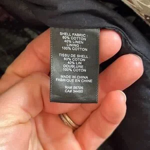 Material: 60% Cotton, 40% Linen; Lining 100% Cotton