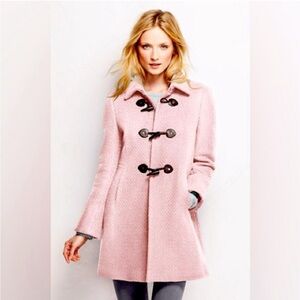 Lands End Wool Blend Basketweave Toggle Pink Coat Size 10
